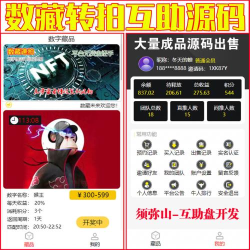 【独家开发】数字藏品NFT互助源码 | 数藏古玩文物字画竞拍溢价拍卖互助系统 | 大额拆分功